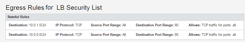 - Updates to the security list for your load balancer subnets: